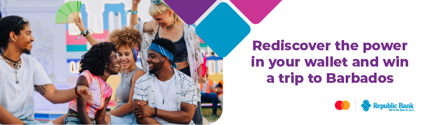 During the period August 25 – October 17, 2025, every purchase* of EC$60 or more with your Republic Bank Mastercard will earn you a chance to win the Grand Prize of a VIP trip for 2 persons to Barbados for The Food and Rum Festival in November!