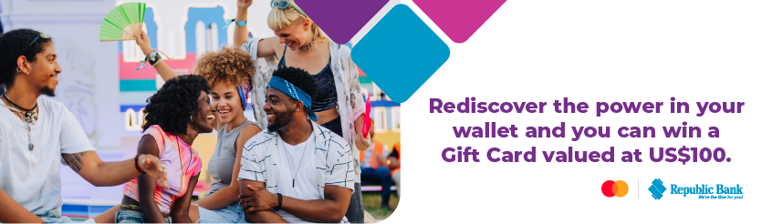During the period October 18 – December 14, 2025, every purchase of EC$60 or more with your Republic Bank Mastercard will earn you a chance to win one of 50 Gift Cards valued at US$100.